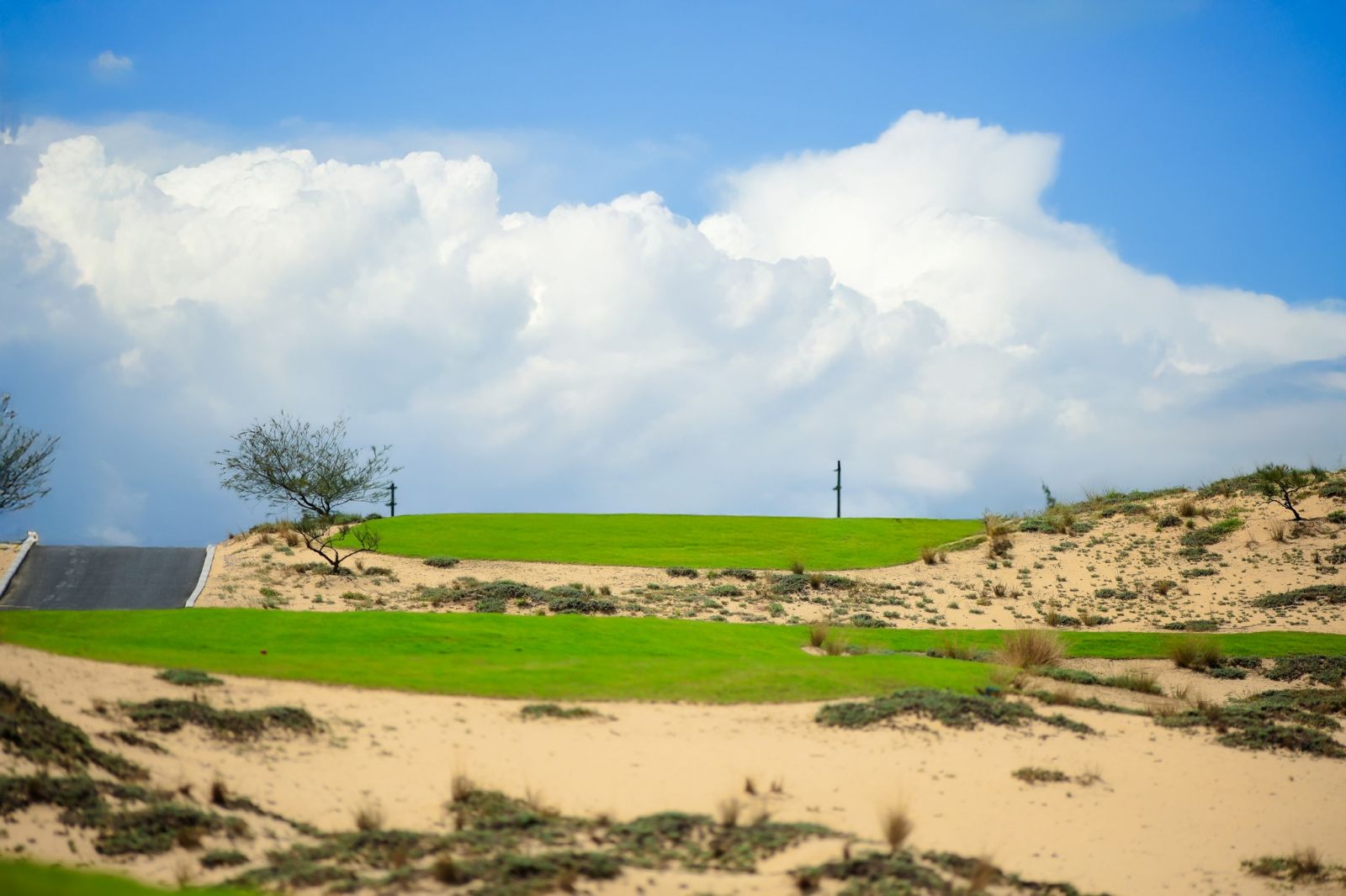 Blue Diamond Quảng Bình được định hướng phát triển theo tiêu chuẩn quốc tế, với quy mô 18 hố (giai đoạn 1). Hệ thống fairway rộng mở, green mượt mà được bố trí hài hòa giữa cảnh quan đặc trưng miền Trung: đồi cát, hồ nước, gió biển và không gian mở tự nhiên.